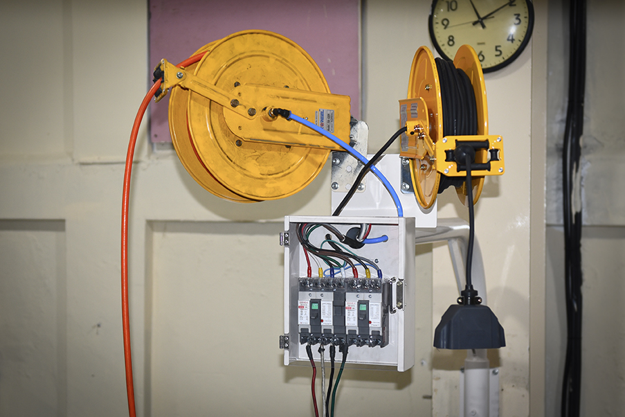 에어 및 전기 공급 장치의 장점으로는 이름과 같이 에어공급과 전기공급(3p 2ea, 2P 1ea) 그리고 바닥으로 전선이 쓸리지 않아 무엇보다 정돈된 현장에서 작업할 수 있다는 장점이 있습니다.