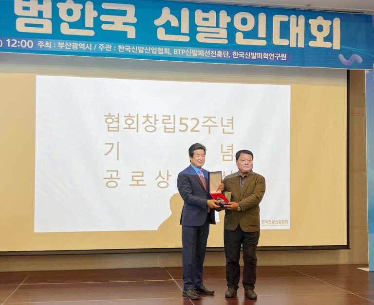 2023년 범한국 신발인대회 행사 김태규상무님께서 협회창립 52주년 기념 공로상 시상에서 시상을 하셨습니다. 축하 드립니다. 공로상 시상