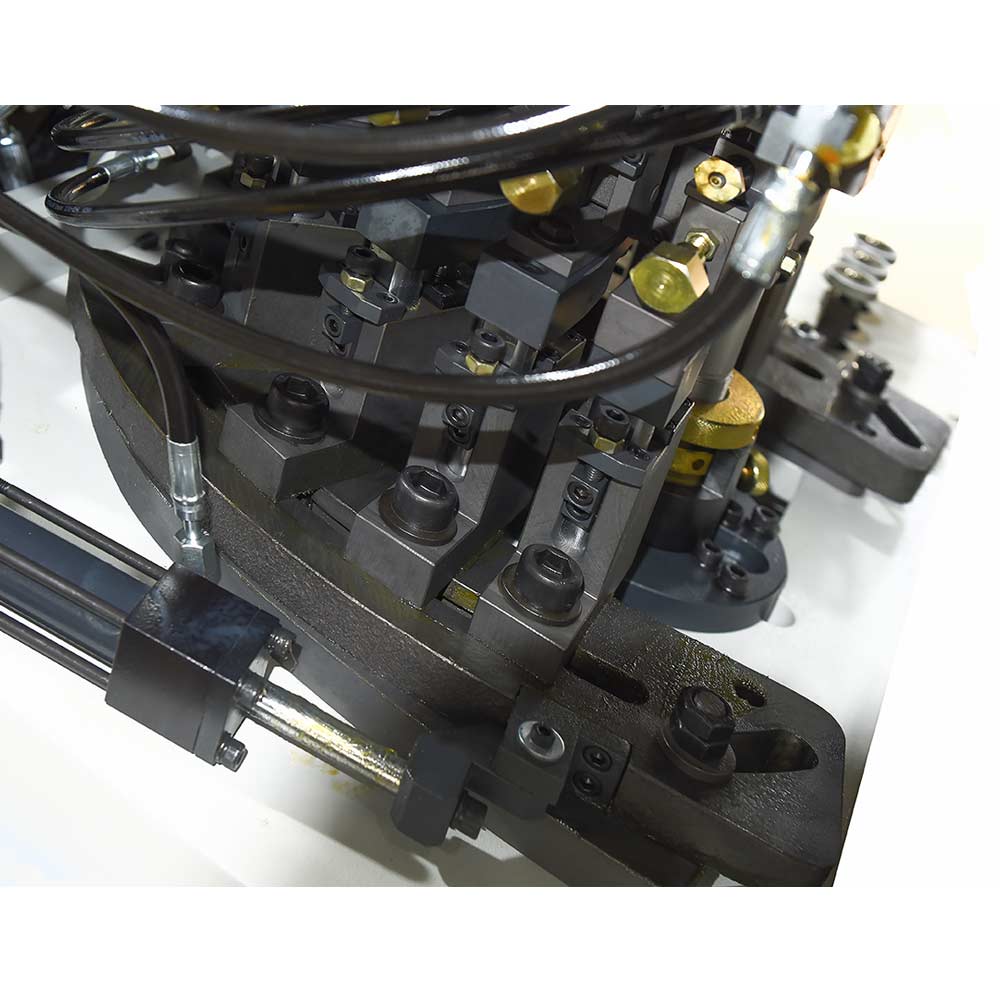 • The machine also includes various kinds of hydraulic devices such as movable wiper elements, head sliding assembly, last supporter, heel supporter and toe band  allowing to accomplish an effective toe lasting job.