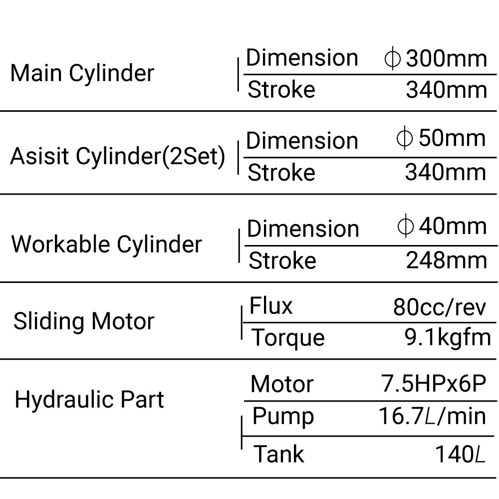 • This machine is 4 point pillar frame structure and consist main cylinder, upper plate, medium plate, heat plate, hydraulic system, and electric system.